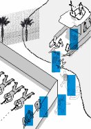 Die Bilder zeigen ausgewählte graphische Darstellungen aus dem Begleitheft. Sie stellen Schüsselszenen der Lebensgeschichten der Porträtierten dar. Die Komplexität der Thematik macht eine 1:1- Abbildung nicht möglich, so dass viele Fragen offen bleiben und Anlass zur Diskussion bieten.